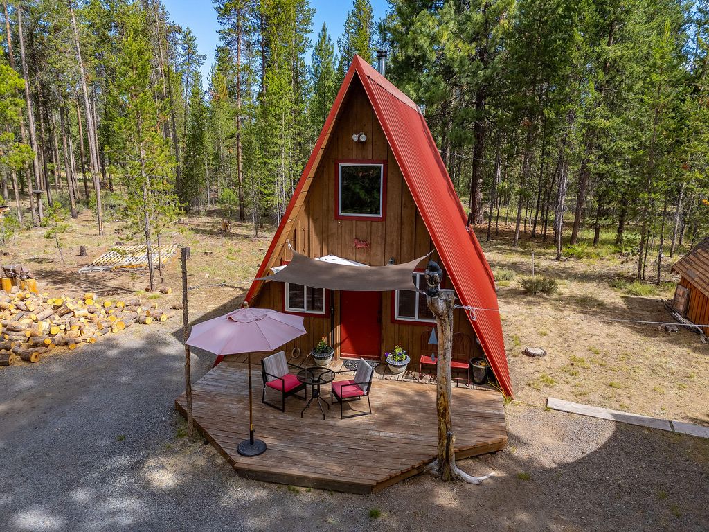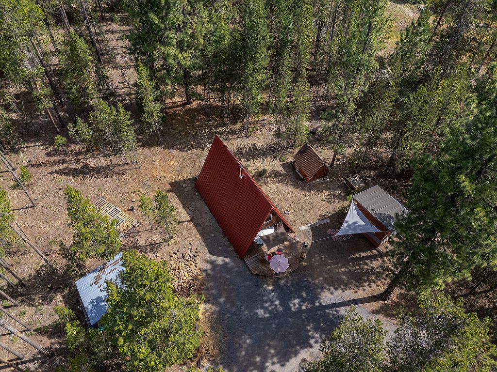 Have you DREAMED of the cute cabin in the woods? What about a Cozy A FRAME on 3 acres of FIRE WISE horse property. The home is a quaint 1 bedroom on the main (possibly another on 2nd floor) with 1 bath, laundry, living room and kitchen on the main. An adorable Art studio approximately 10x12 just outside the home. Great Hay storage in the large container on the property holds approximately 5 tons of hay and the front section as a tack room. A very functional overhang on the container provides shelter for the horses from the elements. The property is fenced and cross fenced on approximately 2 acres at the back of the property. There is also a small shed for storing other items and a nice sized woodshed. Located just 5 minutes from the center of the city with all types of stores, medical offices, restaurants, food trucks and tons of community activities happening throughout the year. Home is SOLD AS IS.