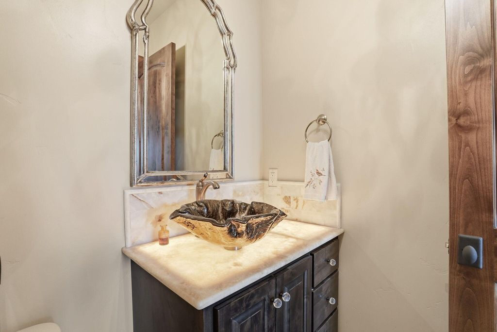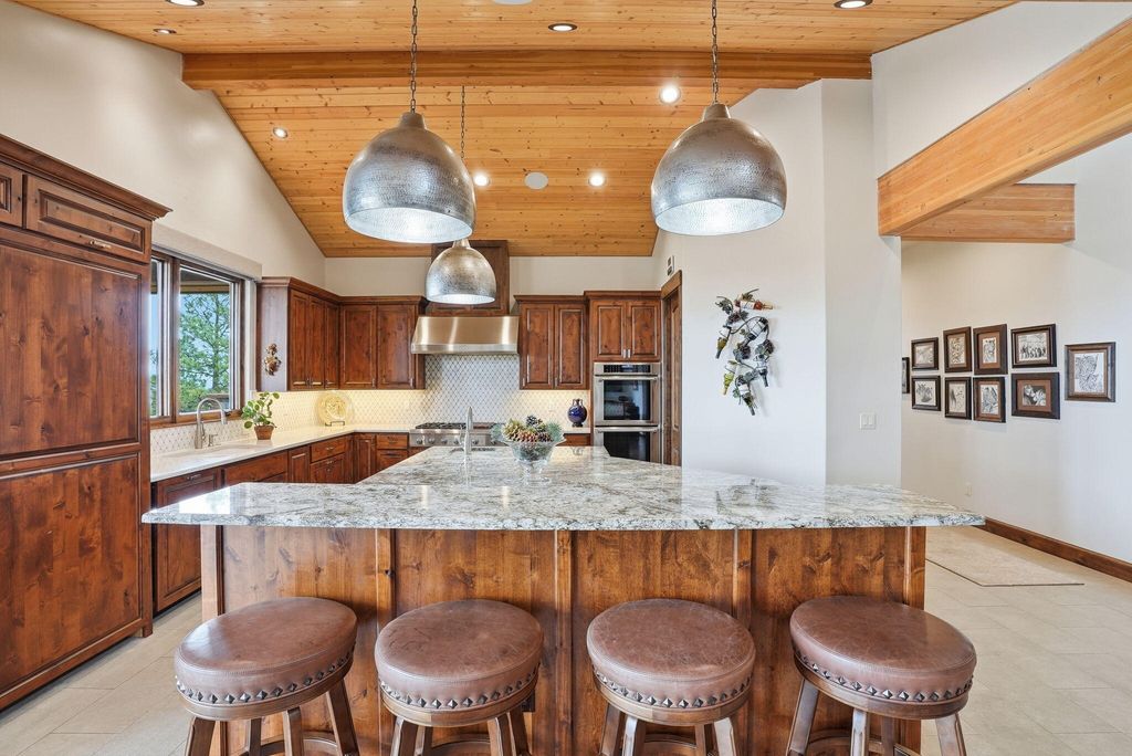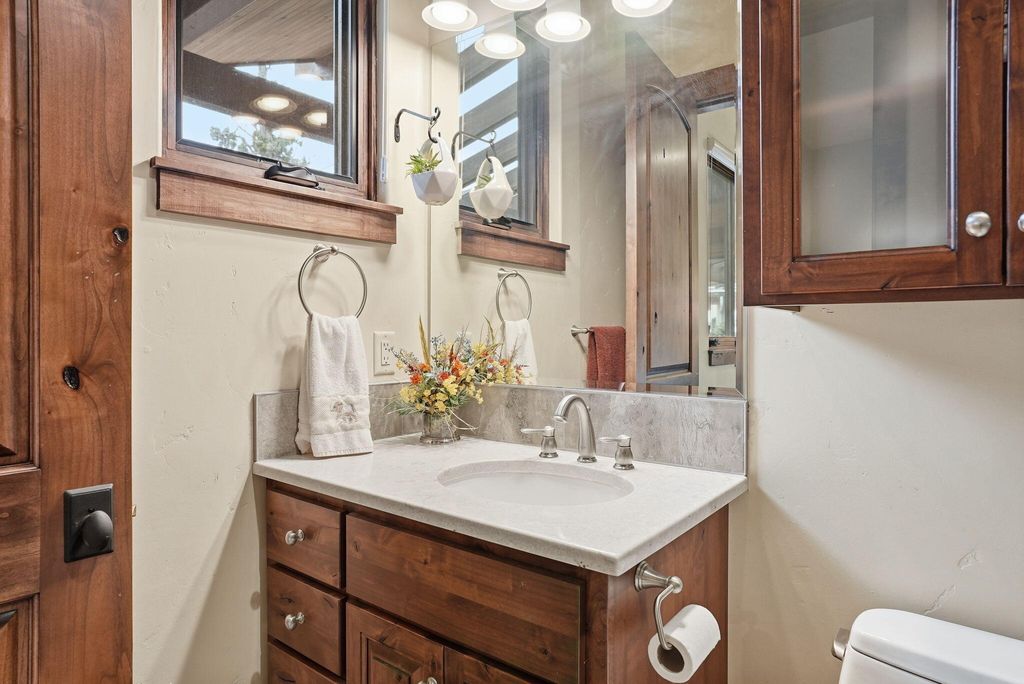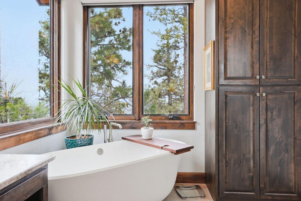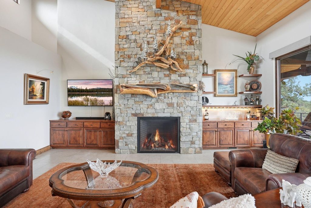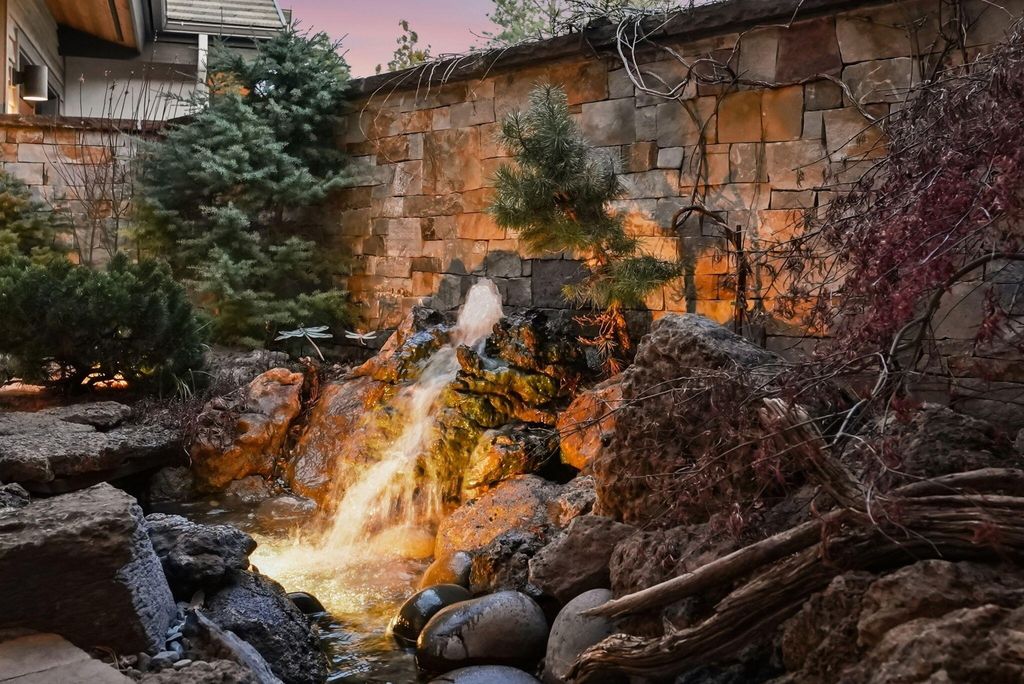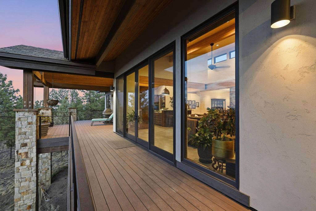 Cascade views define this refined single level residence in Bend's gated North Rim community. Framed by walls of glass, the great room captures the mountain skyline like a living landscape while natural light fills the home throughout the day. Entry begins in a private courtyard where the sound of cascading water sets a calm tone before stepping inside. The kitchen is designed as a natural gathering space, opening to dining and an expansive deck oriented for sunset views over the peaks. The layout offers both comfort and privacy, with a serene primary suite featuring a fireplace and curbless shower, a privately situated ensuite guest suite on the opposite side of the home, and a second guest suite located nearby for flexibility. Additional spaces include a sound insulated theater and dedicated office. North Rim residents enjoy access to the lodge and private trails, minutes from Shevlin Park, Phil's Trail system, Mt. Bachelor access, and Bend's vibrant Westside dining and recreation.