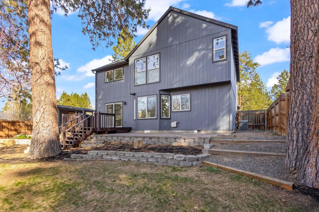 Minutes from the Old Mill District, Box Factory, Deschutes River Trail, Farewell Bend Park, and Hayden Homes Amphitheater. Inside, the remodeled kitchen (2021) features new cabinetry, a stainless farmhouse sink, and a custom butcher block island. The gas fireplace with custom surround and mantel (2021) anchors the living room. Primary suite with walk-in closet; bathrooms updated 2022. Major updates: roof replaced in full (2017), water heater (2017), HVAC (2021), and full exterior paint (2023). Fully fenced backyard. 1 Year Fidelity Home Warranty included Std Plus Plan. Move-in ready in SW Bend. A few rooms are virtually staged.