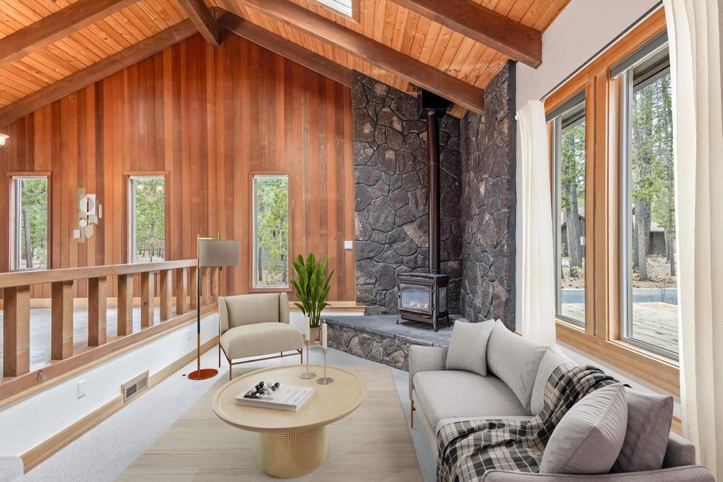 Nestled among towering pines and backing to one of Sunriver's scenic bike paths, this charming home offers effortless access to outdoor adventure and village amenities. Sunlight fills the spacious interior through large windows and skylights, highlighting wood-paneled walls and beamed ceilings that create a warm, authentic Sunriver feel. The sunken living room with a cozy gas stove invites relaxation after a day on the trails. With 4 bedrooms--plus a bunk room--and 3 full baths, it's perfect for family gatherings or a high-performing vacation rental. Step outside to a large deck with a built-in BBQ and hot tub, ideal for summer dining and starlit evenings. Easy access to the Village, the River, the Resort Lodge and Business Park, even the SHARC, yet on a quiet loop. Peaceful yet close to the action. Set on a .23-acre lot combining privacy with trail access, this home delivers the true Sunriver lifestyle--whether as a peaceful retreat or income-producing opportunity.