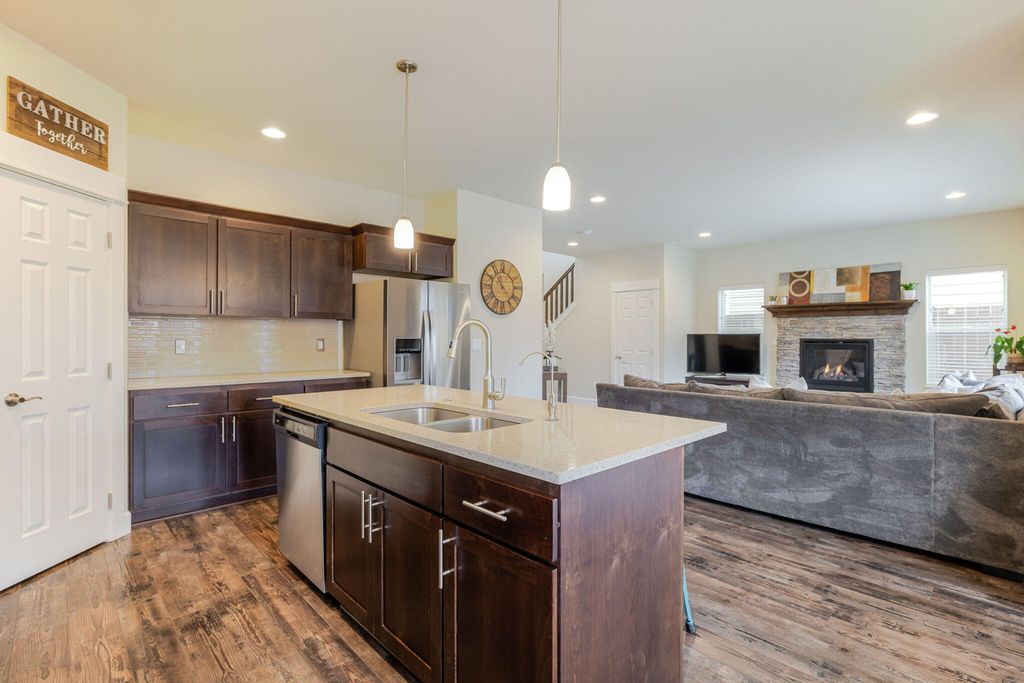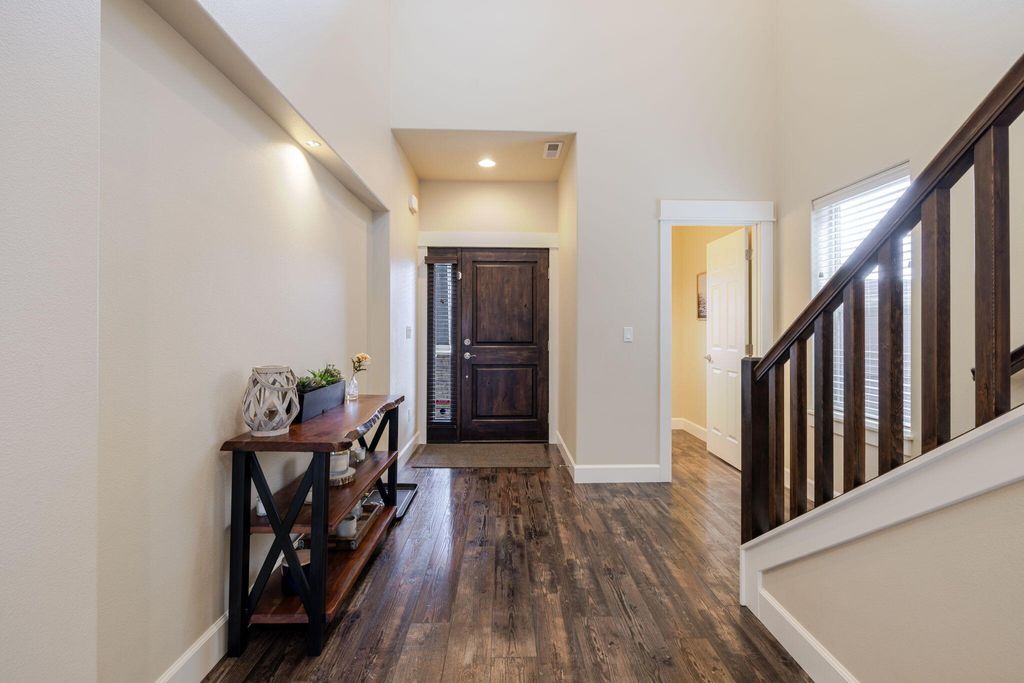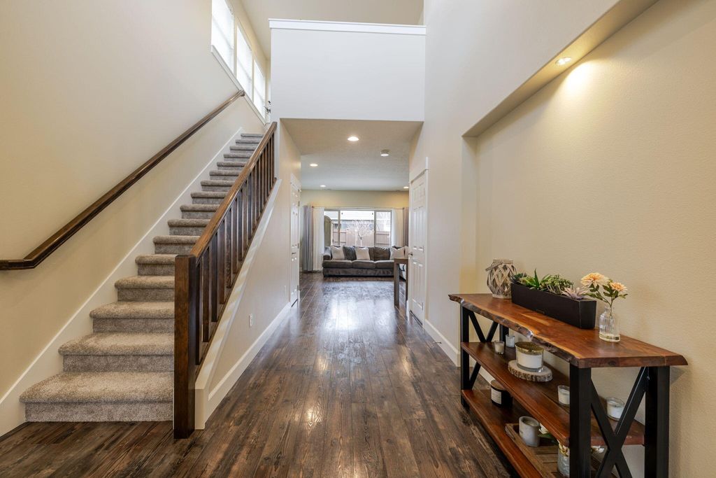 Excellent Craftsman Northwest style home in Mirada (The Williamson plan). Two story high grand entry leading into the spacious bright & light great room with stone surround gas fireplace. Open kitchen with stainless steel appliances (new range in 2025), quartz countertops, and an Osmosis water purification system. Upstairs has three bedrooms, small loft area - all newly carpeted with high end pad in 2025. Large primary suite with hand crafted coffered ceilings, oversized walk-in closet and bath with soaking tub. Backyard offers a covered extended patio with a beautiful 2-year-old sauna, garden area, pear / apple trees & firepit. Both sides of the home have professionally installed concrete for storage, etc. Enjoy the Mirada community pool & 4-acre park. Wonderful place to call home!