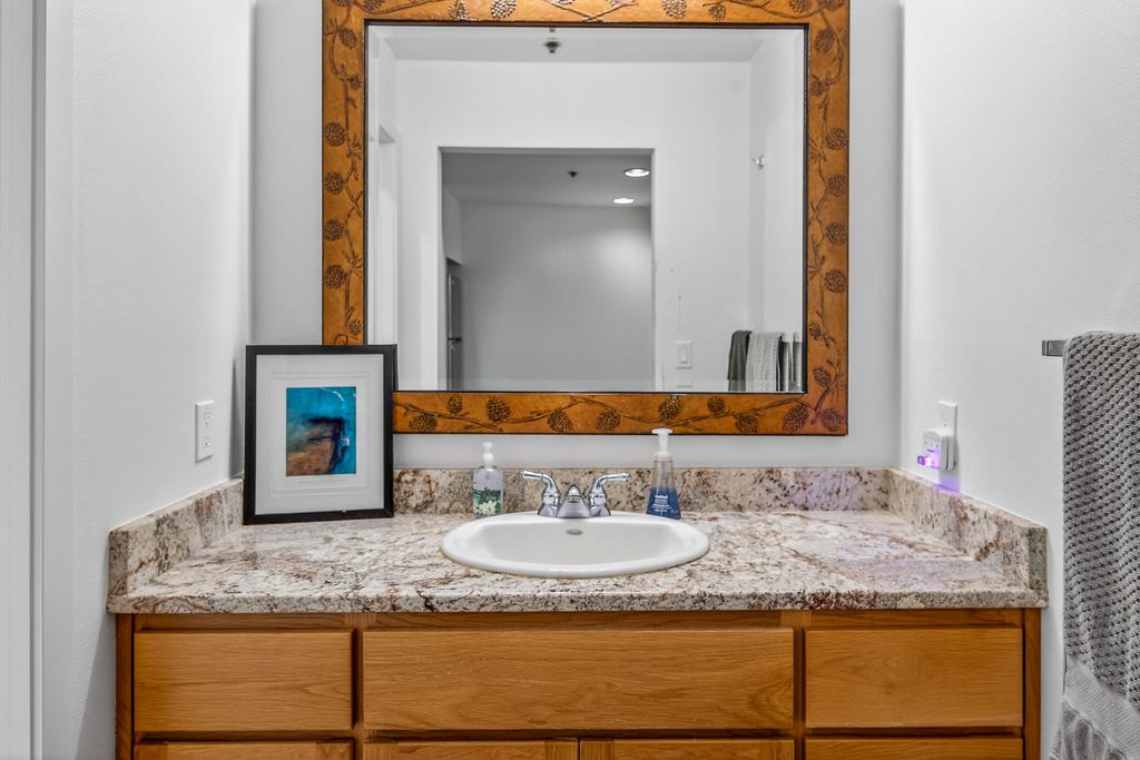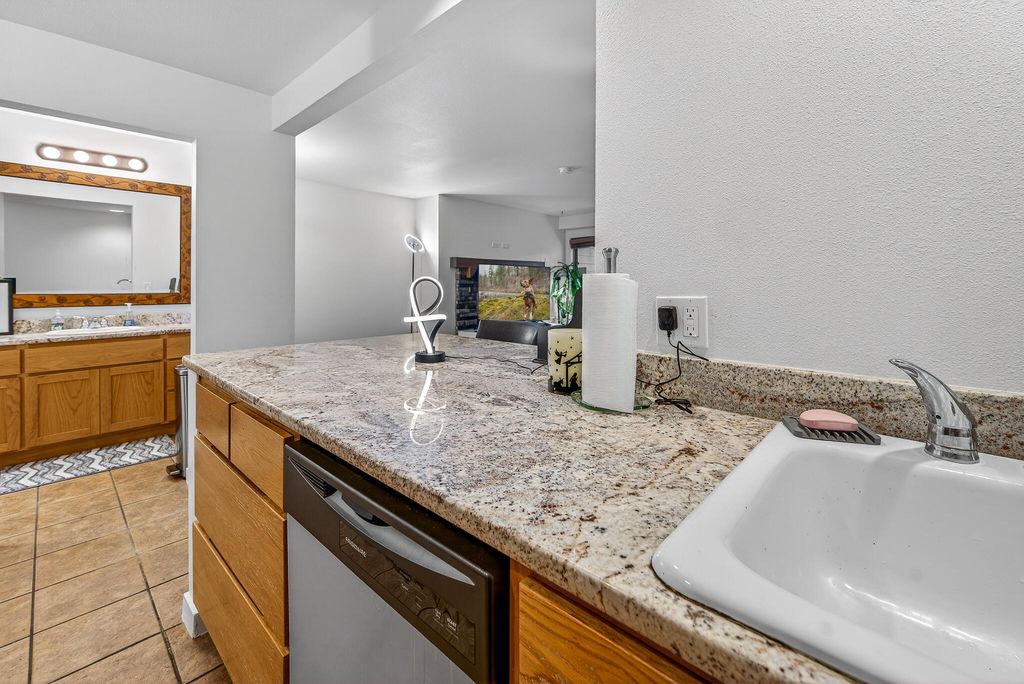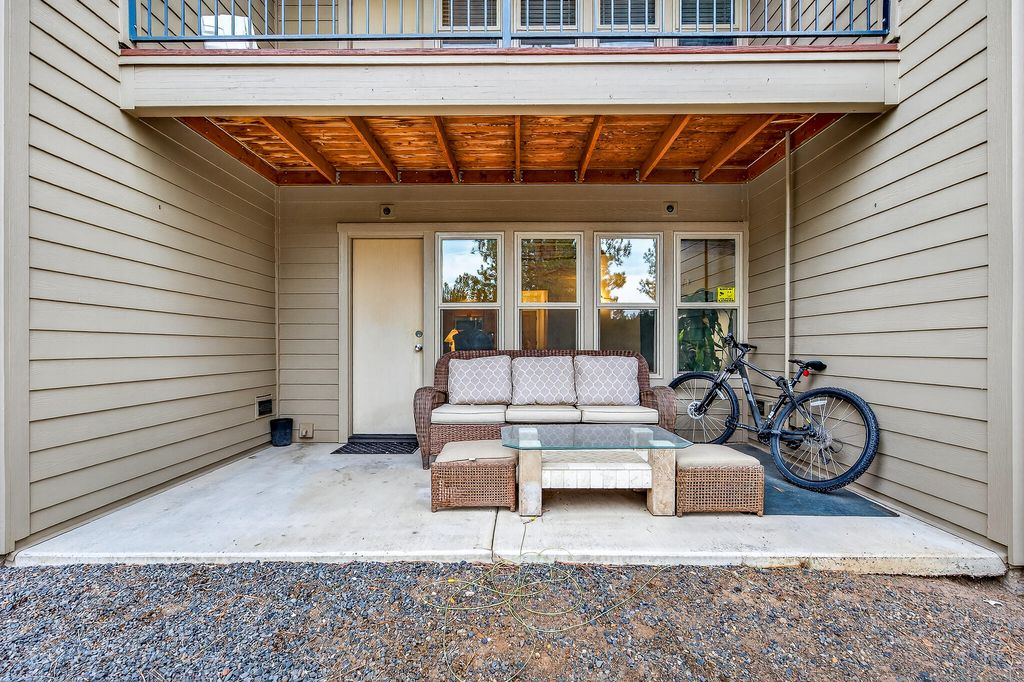 Turnkey, fully furnished 1 bed/2 full bath ground-floor condo at Seventh Mountain Resort. Private end unit backing to Forest Service land with partial Mt. Bachelor views. Enjoy direct access to miles of trails. Features include slab granite countertops, spacious living area, efficient layout, separate bedroom entrance, and two covered patios. Conveniently located 14 miles to Mt. Bachelor and 7 miles to Bend. Seller is a licensed real estate broker.