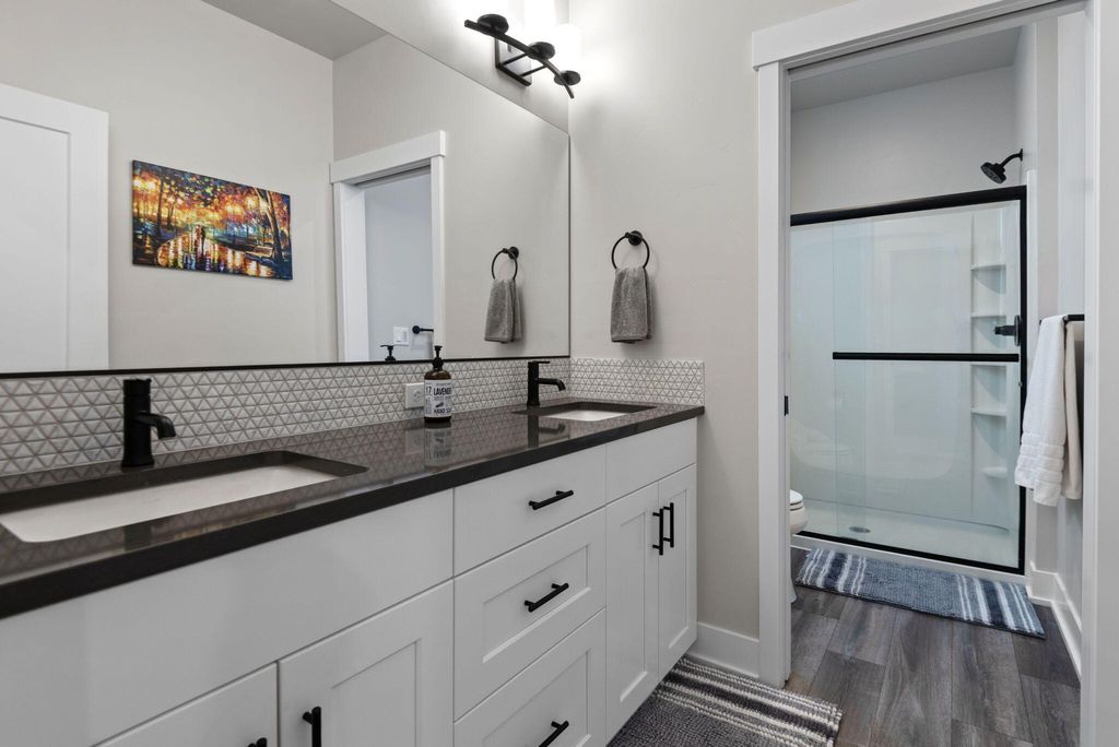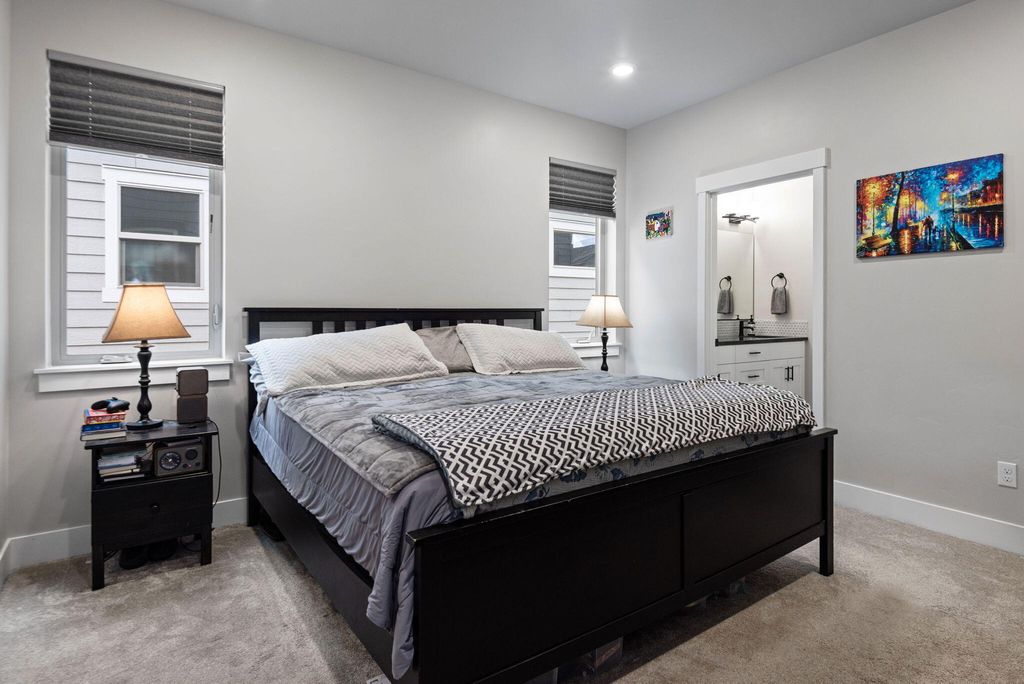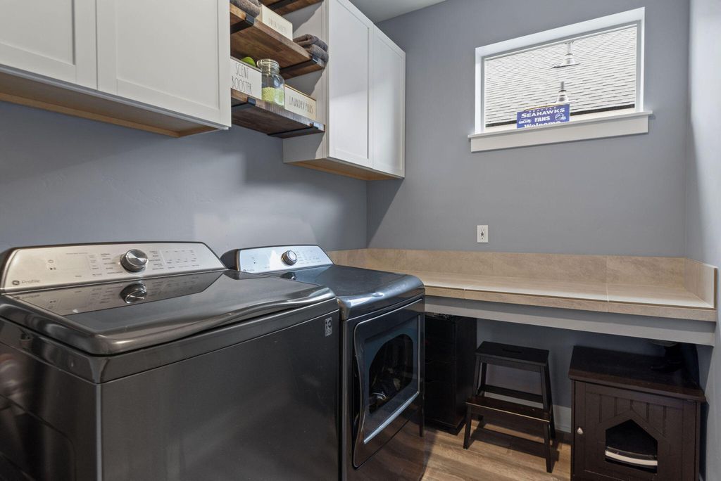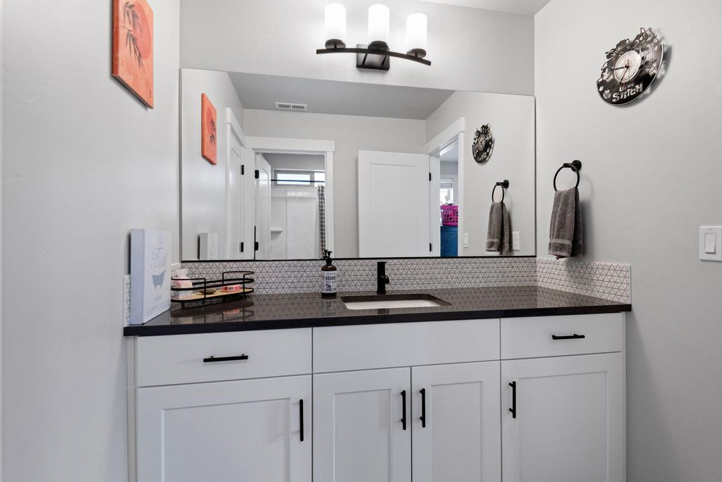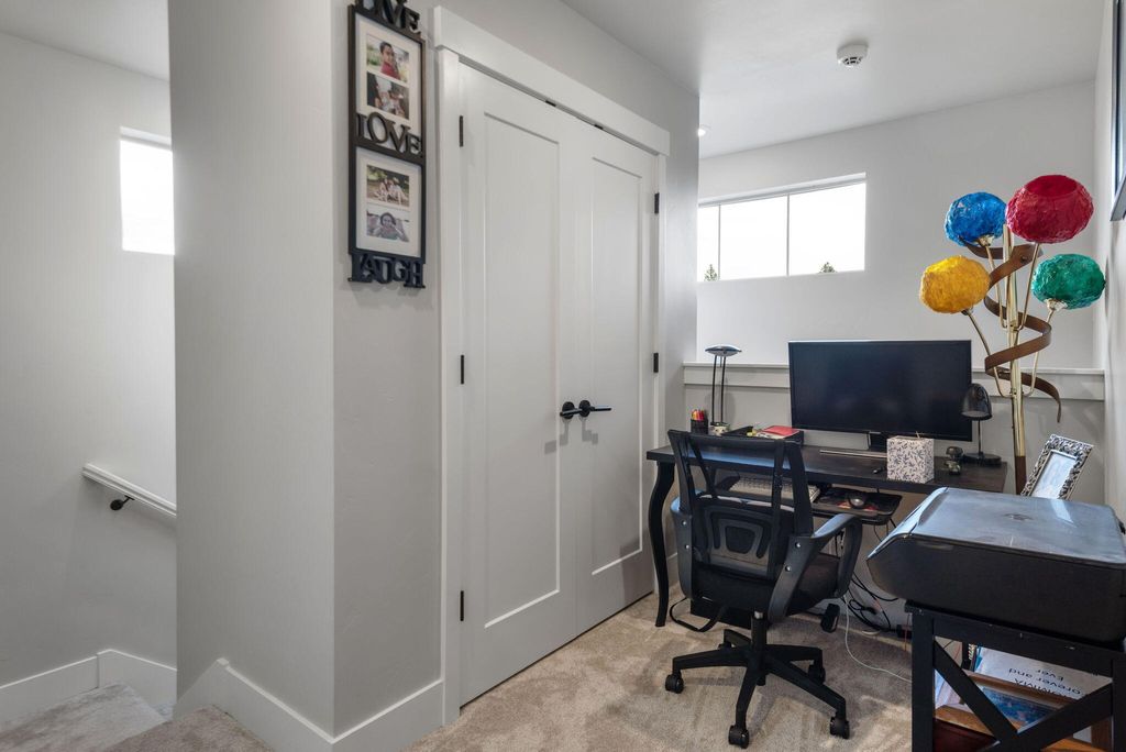 Fantastic layout! Primary suite and living room downstairs with cozy fireplace, gorgeous kitchen and dining area. Easy access to two outdoor covered porches. Upstairs, the huge bonus room has an office nook. Two bedrooms and a full bathroom off the bonus room, makes for terrific separation of living spaces. This stylish Arcadia floorplan by Pahlisch was made even better with several Seller upgrades: A/C, sleek rubberized garage floor and custom shelving in the Primary Suite walk-in closet and Laundry room. Smart features: Ring doorbell, security system linked to garage door and smoke/CO, WiFi thermostat and smart settings for oven and refrigerator! Bright, airy and modern with a cozy fireplace makes this home desirable. Thoughtfully designed, low maintenance lot with spacious alley for garage and driveway access, so there is no neighbor right behind you. Crescent Creek offers awesome amenities like a clubhouse with gym, parks, basketball court and scenic walking paths.