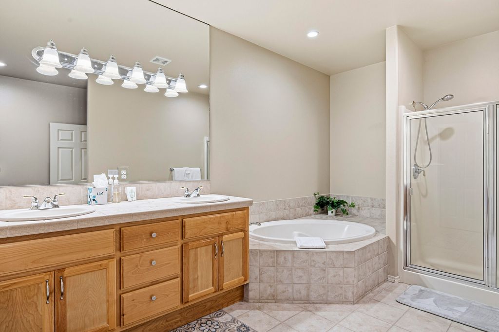 This inviting single level townhome in the desirable Forest Ridge neighborhood of Eagle Crest offers comfort, convenience, and resort style living. With an exceptional 3-bedroom layout, the home features a gracious entry that opens to a spacious, light filled kitchen and living area. The kitchen is updated with quartz countertops, a modern backsplash, and new lighting throughout. The primary suite includes a generous en suite with a soaking tub and separate shower, creating a private retreat. Located within Eagle Crest Resort, Forest Ridge offers access to golf courses, tennis and pickleball courts, indoor and outdoor pools, fitness centers, and miles of scenic trails, all just minutes from Redmond and Bend. This home is a true turnkey short term rental opportunity, with furnishings included if desired, making it ideal as a primary residence, vacation getaway, or investment property.