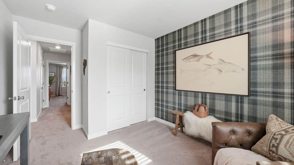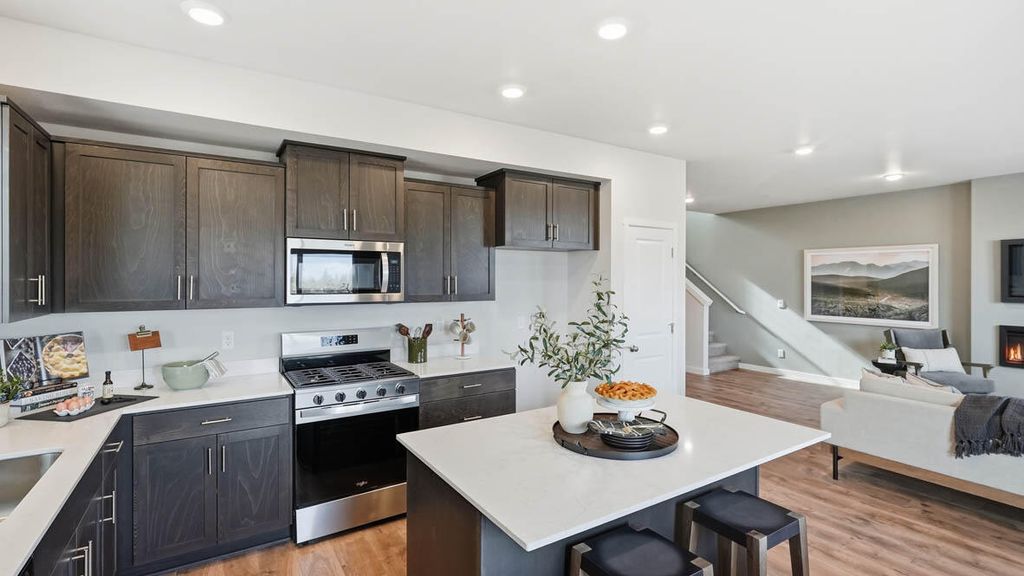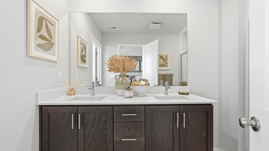 New floor plan to Stevens Ranch! The Newport two-story floor plan has 5 beds, 3 baths, with a bed and bath on the main floor that is ideal for an at-home office or a guest bedroom. The great room has designer features, and the kitchen has beautiful shaker cabinetry, quartz solid surface countertops, and stainless-steel appliances. The primary bedroom is spacious, it has a walk-in closet, and an en suite bathroom with a double vanity. The hall bathroom adds extra comfort with a double vanity as well. Sales office hours are Mon-Sun 10:00-5:30pm. Photos are representative of plan, features/specs may vary