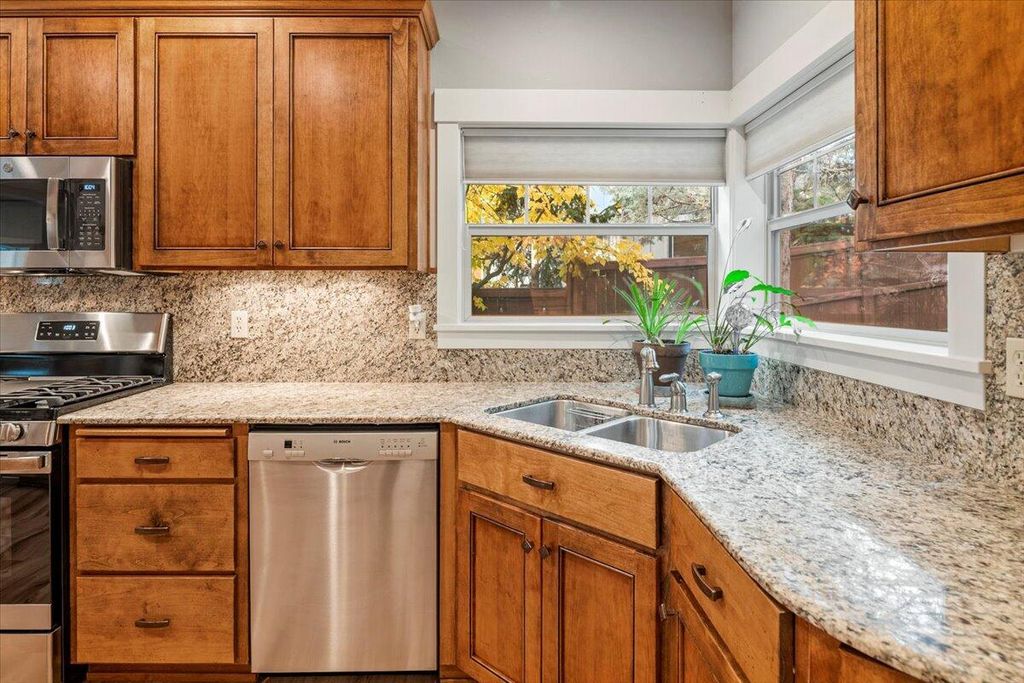 Nestled on a coveted corner lot in one of Southeast Bend's most sought-after neighborhoods, Mountain Pines. This exceptional 4-bedroom, 2.5-bath residence offers 2,454 ft. of meticulously designed living space. This stunning two-story home boasts unparalleled craftsmanship, featuring luxurious finishes and abundant natural light throughout. Upon entry, you are greeted by an open floor concept.The private primary suite is a true sanctuary, complete with a custom-designed master bathroom that features exquisite materials and an indulgent spa-like atmosphere. Three additional bedrooms are thoughtfully designed to maximize space offering flexibility for guests and family. Oversized 3-car garage for your golf cart and private access to the Bend Golf Club.Just minutes from Caldera High School and Alpenglow Park this home offers the perfect blend of luxury and lifestyle.