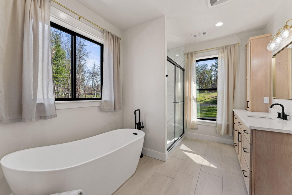 Welcome to this stunning & nearly new custom-built elevated farmhouse situated on 2.51 acres & located in the highly desirable Russell Road Estates! Built in 2023, this elegant home boasts gorgeous craftsmanship throughout- You'll fall in love w/ the attention to detail as soon as you step thru the grand front door. This home was extremely well designed- it greets you with vaulted ceilings, an abundance of natural light and an amazing open-floor plan w/ the beautiful kitchen overlooking the living/dining space. The bright kitchen features stainless-steel appliances, a double oven, quartz counters, a large island perfect for hosting gatherings, & an impressive walk-in pantry. The primary suite boasts an incredible bath/closet combo w/ his & her vanity's, a soaking tub and beautifully tiled shower. Spacious laundry off of the expansive garage w/ dog washing stall, an excellent well, RV hookups, backyard w/ covered patio, lush landscaping & a firepit area for summer nights! THIS IS IT!