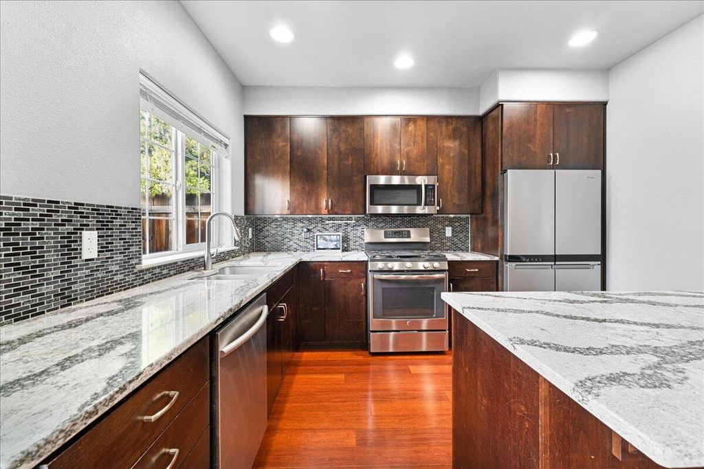 Move-in ready 3 bedroom, 2.5 bath home with a 2-car garage, ideally located on a cul-de-sac in a desirable Central Point community. This well-maintained home features bamboo flooring, a gas fireplace, and thoughtful updates throughout. Recent improvements include a new HVAC system, new water heater, leaf filters, and a low-maintenance yard for easy upkeep. Smart-home features include a local security camera system with no-fee option, Ring doorbell camera, smart light switches, and smart thermostat. The primary suite offers spacious bathroom with a double vanity, and a large walk-in closet. Enjoy outdoor living from the balcony. A great opportunity to own a nicely updated home close to local amenities, shopping, dining, and more.