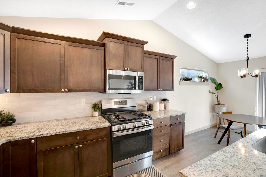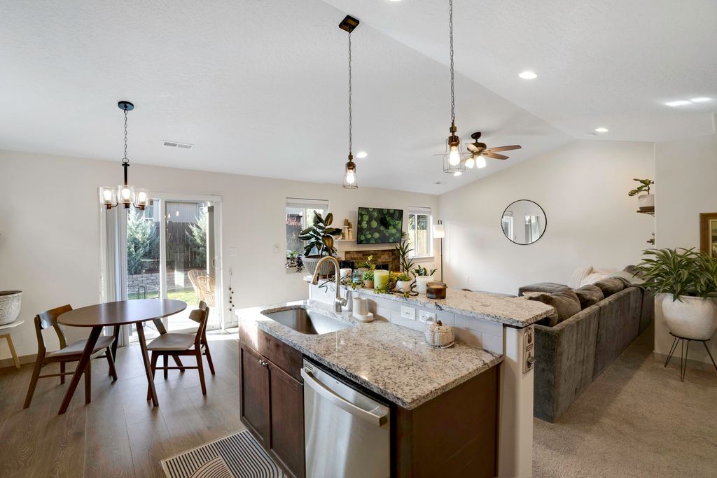 Fall in love with this Wonderful single-level home in desirable Maple Meadows featuring a welcoming great room floor plan with vaulted ceilings, abundant windows, ceiling fan, and gas fireplace. The kitchen offers granite countertops, stainless steel appliances, breakfast bar, and a generously sized pantry and plenty of counter space. Spacious primary suite is separated from the other bedrooms for added privacy and includes dual closets, dual sinks, and a walk-in shower. Covered back patio overlooks the fenced backyard with raised garden beds and lawn area. Conveniently located near schools, shopping, and everyday amenities. Easy access to Hwy 97 making for an easy commute!