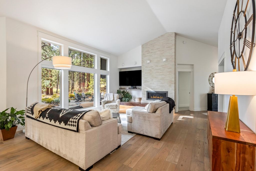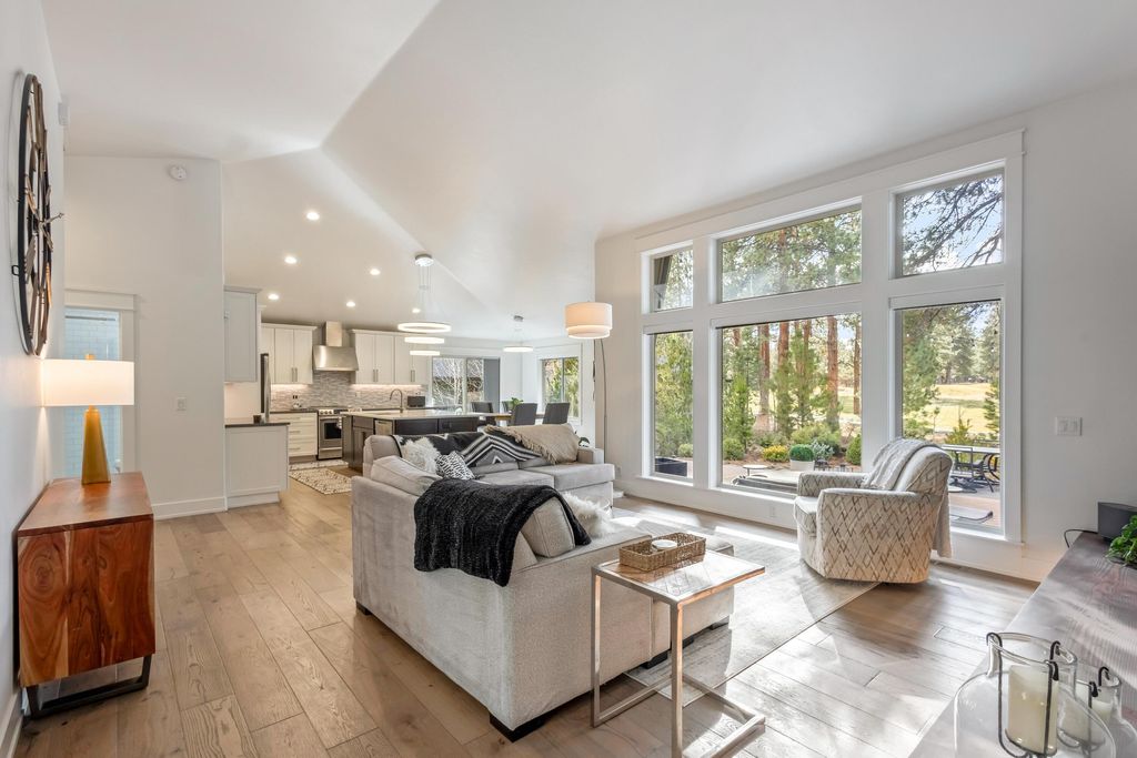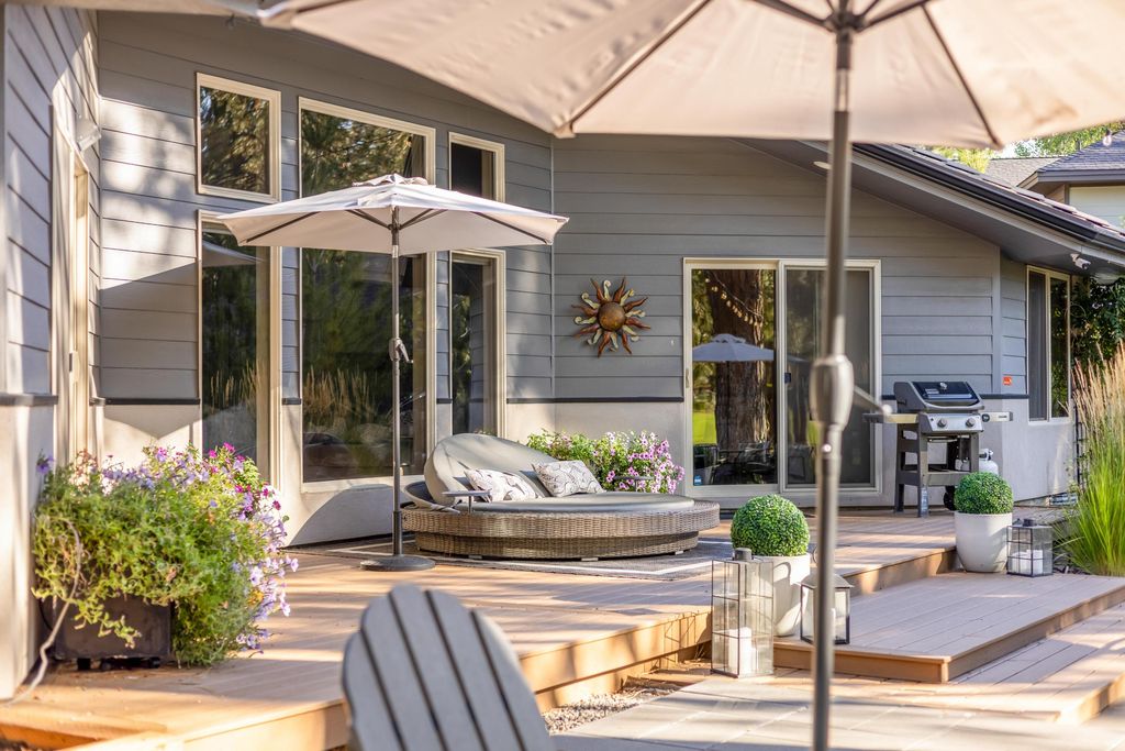 Nestled along the 7th fairway of prestigious Widgi Creek Golf Club, this eloquently renovated 3-bed, 2-bath retreat perfectly blends refined living with resort-style relaxation. Bathed in golden light, the home captures breathtaking golf course views while enjoying the privacy of a large, treed lot. A gorgeous, thoughtfully updated kitchen inspires effortless entertaining. The west-facing patio is the true showstopper featuring a gas fire pit and multiple seating areas. It is an entertainer's dream. Watch the sun dip behind the Cascades while golfers complete their round below, all with exceptional privacy. A spacious garage with workshop rounds out this beautiful property with room for your gear, hobbies, and everything the Central Oregon lifestyle demands.