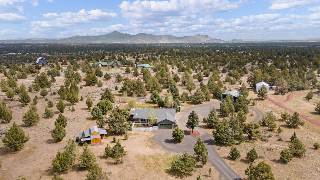 Private 5-acre retreat designed for those seeking space, privacy, and a true Central Oregon lifestyle. This newer, single-level home offers 1,760 sq ft of light-filled living with vaulted ceilings and a window-lined great room. Enjoy the warmth of the wood stove or unwind on the covered front porch. The kitchen is built for gathering with quartz countertops, stainless appliances, walk-in pantry, and a large island open to the dining area. The primary suite features a walk-in closet and step-in shower, while two additional bedrooms offer flexibility for guests, office, or hobbies. Outdoors, enjoy a fully fenced setting with deer-proof fencing, mature landscaping, underground sprinklers, composite deck, pergola, and fire pit. Includes RV hookups, carport, and room for a shop or barn. Turnkey acreage for those seeking space, with the infrastructure and flexibility to build out a hobby farm or simply enjoy the privacy and freedom of acreage living.