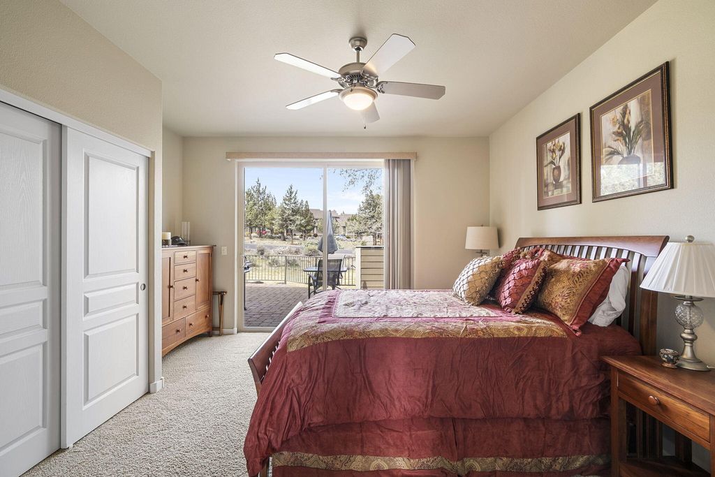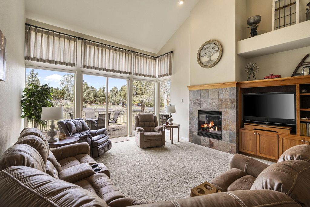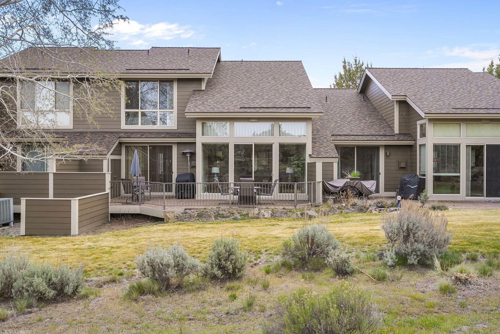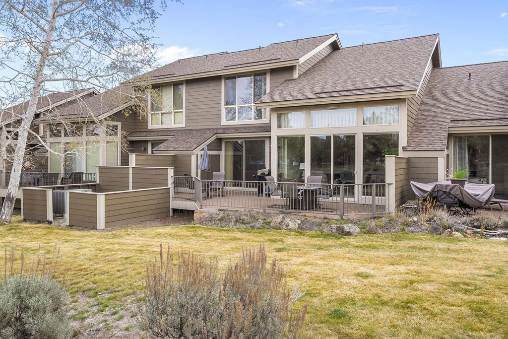 Turn-key resort living in Eagle Crest! This stunning Craftsman townhome is fully furnished and move-in ready - lightly lived in and ready for a new owner. The main-level primary suite offers effortless single-floor living, while soaring vaulted ceilings, gas fireplace, and granite kitchen counters create an elegant, welcoming interior. Step outside to the private paver patio with gas fire pit, BBQ and extra storage -- your personal oasis with no rear neighbors. Steps to pickleball courts, indoor/outdoor pools, splash pad, and fitness center. Eagle Crest delivers three championship golf courses, miles of trails, Deschutes River access, tennis, and an on-site restaurant. Bachelor and Hoodoo are nearby for winter recreation. HOA covers all exterior maintenance - true lock-and-leave ownership. New roof and new furnace included. Resort lifestyle, completely turnkey and ready for you -- STR eligible and perfectly suited as a vacation retreat or income property or primary resort living.