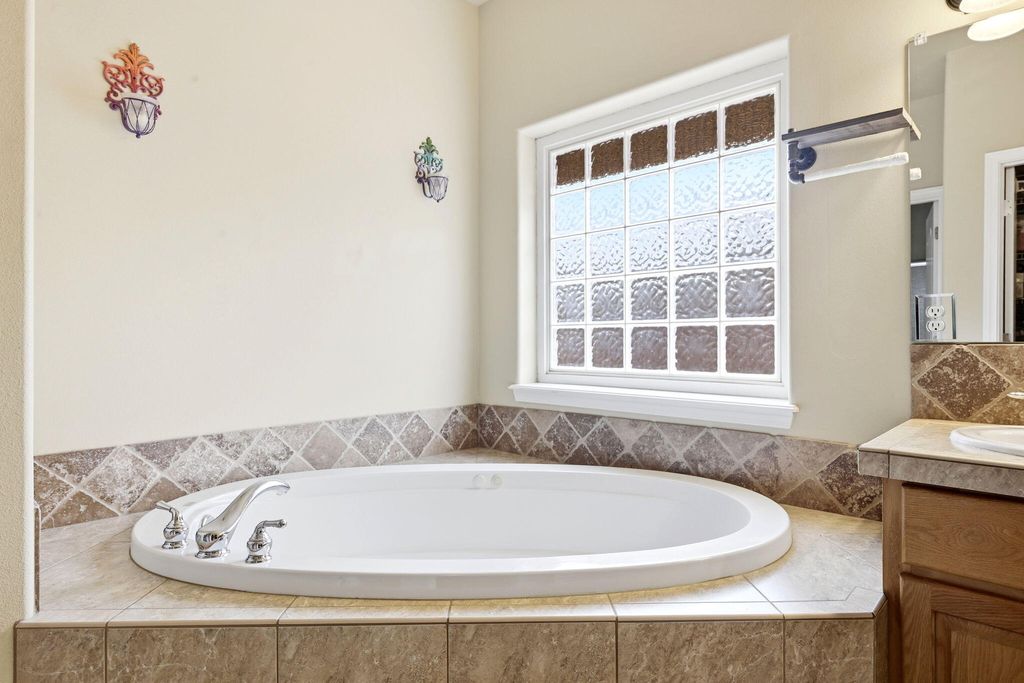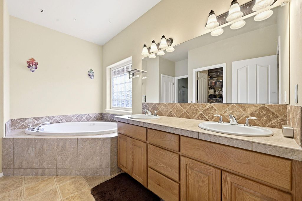Breakfast Bar, Ceiling Fan(s), Double Vanity, Open Floorplan, Pantry, Soaking Tub, Tile Counters, Vaulted Ceiling(s), Walk-In Closet(s) |