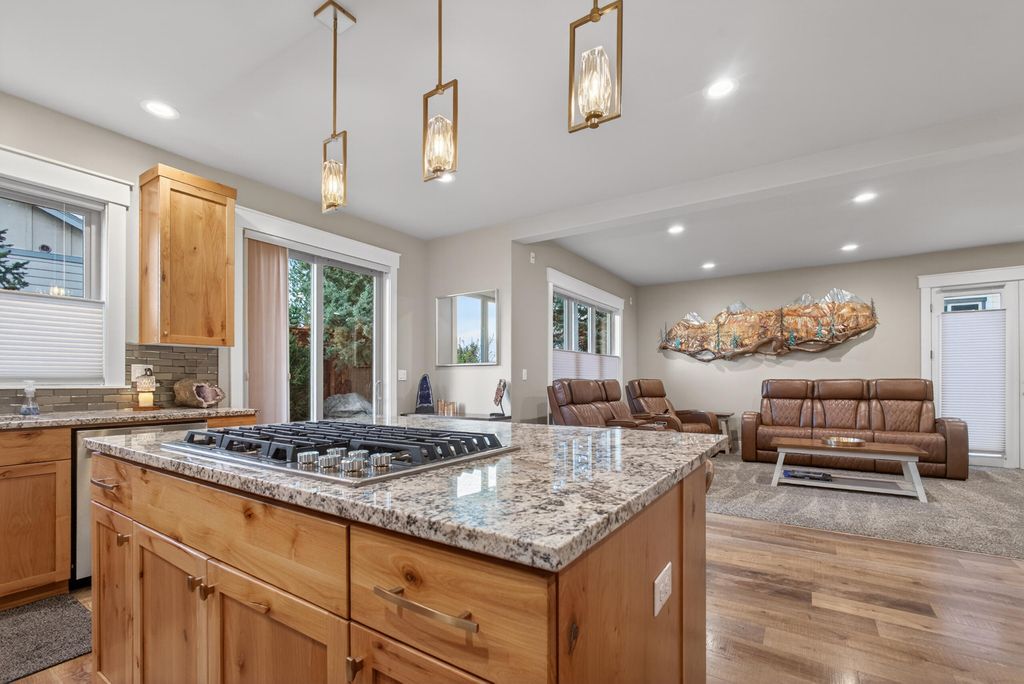 This is the home you can't help but notice driving by! Completely rebuilt from the foundation in 2022 with custom, high-end finishes throughout. From soaring ceilings, beautiful lines, abundance of light with panoramic cascade mountain views. Gorgeous knotty alder cabinets/built ins with champagne bronze fixtures. Four spacious bedrooms upstairs plus a private main-floor office. This .24-acre lot is fenced with a double gate so you can store anything that won't fit in the 703 sq ft garage. Perfect for an RV or boat! There is ample space for entertaining or simply relaxing by the water feature with koi and goldfish. Power for a hot tub is just outside the back door and room to add any of your personal touches! There are incredible views from different areas in the home that you just must see for yourself. Established neighborhood in SW Redmond with easy access to the airport, new coffee shops and restaurants in the area with more to come.