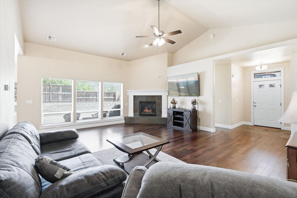 This stunning, light-filled Craftsman in East Medford's desirable Harbrooke Court offers the perfect blend of modern luxury and low-maintenance living with the rare advantage of NO COMMON WALLS. Rest easy with a brand-new HVAC system installed in Feb 2026, ensuring peak efficiency and peace of mind. The thoughtfully designed split floor plan features vaulted ceilings and large windows, creating an airy atmosphere. The gourmet kitchen boasts elegant white cabinetry, high-end quartzite countertops, a designer tile backsplash, and a gas range. This flows into a great room centered by a cozy gas fireplace with custom tile. The spacious primary suite features a luxurious en-suite with dual vanities and a custom-tiled walk-in shower. Combining the feel of a single-family home with the turnkey convenience of an HOA that maintains the exterior, roof, and landscaping, this property is a rare find in a prime location. Truly a move-in-ready gem!